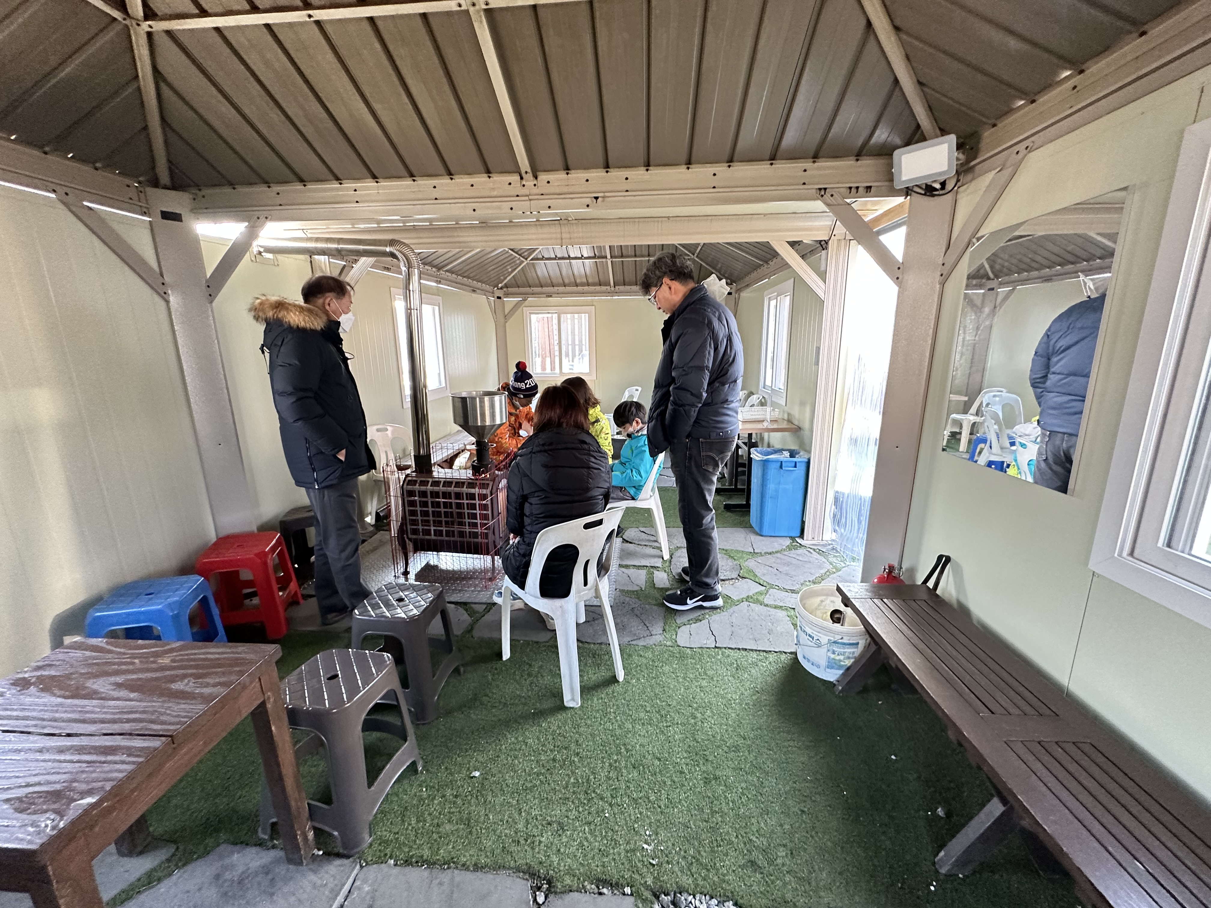 펠릿으로 난로를 켜 놓으셨고요~~ 기다리는 도안 춥지 않게 배려를 해 놓으셨어요~~