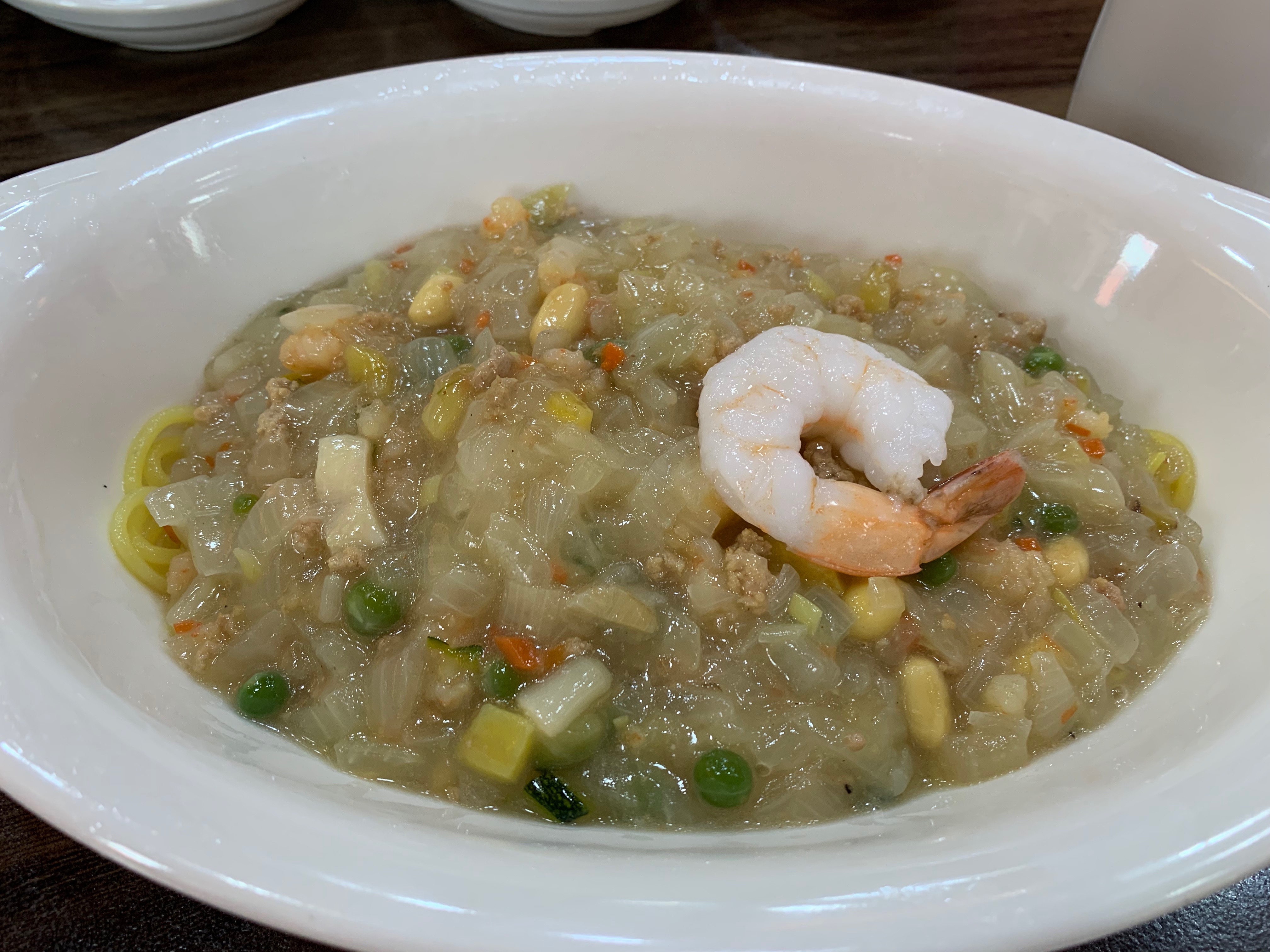 이 꽃게새우짬뽕의 신의 한수는 위에 올려진 새우튀김인것 같아요. 요게... 튀김옷이 맛이 좋아요. 쫀득한게~~~ 간도 좀 되어 있는것 같고요.